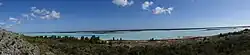 O lago está em uma bacia rasa, e a área coberta pela água diminui drasticamente na estação seca, resultando em extensas planícies hipersalinas expostas. Espécies de plantas tolerantes ao sal, como a salicórnia (Salicornia pachystachya ou Arthrocnemum pachystachyum) e a samambaia dourada (Acrostichum aureum), ocupam as planícies à medida que o nível da água recua. A espécie introduzida de casuarina (Casuarina equisetifolia) pode ser encontrada em pequenos grupos ao longo da margem leste,[16] assim como uma faixa estreita de árvores de Salvadora angustifolia.[17]