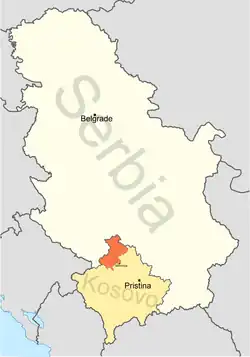 A partição de Kosovo geralmente se refere a divisão do Kosovo do Sul sobre o Rio Ibar.[2][3] O norte do rio é uma área de maioria étnica predominantemente sérvia, enquanto sul do rio é uma área predominantemente de maioria étnica albanesa.[4] Há também vários enclaves sérvios no Kosovo ao sul do rio Ibar, que têm sido propostos para serem incluídos em uma possível partição de Kosovo. [carece de fontes] O Kosovo do Norte é controlado pela Assembleia da Comunidade dos Municípios da Província Autônoma do Kosovo e Metohija, um governo regional leal a Belgrado;[5] enquanto que o resto do Kosovo é administrado pelo governo da "República do Kosovo".