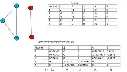 Em tal cenário, o segundo menor autovalor (λ) de L, produz um limite inferior para o custo ótimo (c) de partição de corte com relação c ≥ λ/n. O autovetor (V) correspondente à λ, chamado de vetor de Fiedler, bissecciona o grafo em apenas duas comunidades baseadas no sinal da entrada do vetor correspondente. Dividindo em um número maior de comunidades é geralmente atingido ao fazendo bisseções repetidas, mas nem sempre isso dá resultados satisfatórios. Os exemplos nas figuras 1 e 2 mostram o espectro de bisseção.