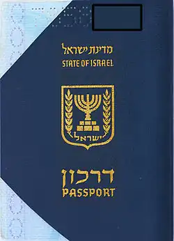 ![]() A capa de um passaporte israelense contemporâneo biométrico, emitido desde 2013. | |