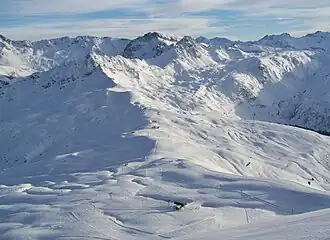 Nas duas vertentes do colo encontram a domínio esquiável da Contamines-Hauteluce com 47 pistas, ou com pistas de BTT durante o Verão.