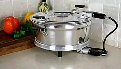 Devido à boa condutividade térmica, são fabricados totalmente em chapa de alumínio. Possuem a forma de cloche redonda ou, menos frequentemente, retangular, com capacidade para cerca de 8,0 litros. Uma resistência elétrica com potência de 550 a 590w é colocado na tampa. Existem também produtos de duas peças, que possuem uma base aquecida e versão XL de 18 litros. A potência da resistência na base é geralmente de 390w. A base aquecida também pode ser usada para aquecer pratos em outras formas.
