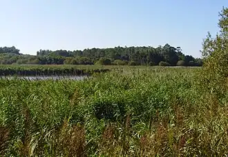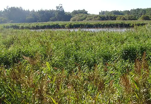Junto às valas, nos locais temporariamente alagados, predominam lírios-dos-pântanos ("Iris pseudacorus") e tabúas ("Typha latifolia" e "Typha angustifolia"). Nos terrenos baixos e planos encontram-se predominantemente canas ("Arundo plinii" e "Arundo donax") e caniços ("Phragmites australis"), bem como exemplares de salgueiros ("Salix atrocinera" e "Salix alba") e choupos ("Populus nigra").