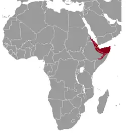 Pode ser encontrado na Eritreia, Djibuti, Etiópia e Somália.