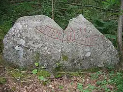 A pedra está localizada nas ruínas da Igreja de Ärja. Contém a palavra skipari que significa "companheiro de navio". A palavra é encontrada numa segunda pedra na Sudermânia e há seis outras ocorrências em pedras do sul da Suécia e da Dinamarca.[51] A partir deste uso, parece que Holmoteno (Holmsteinn) era um capitão de um dos navios da expedição e Osniquino (Ósníkinn) era um membro da tripulação.[52]