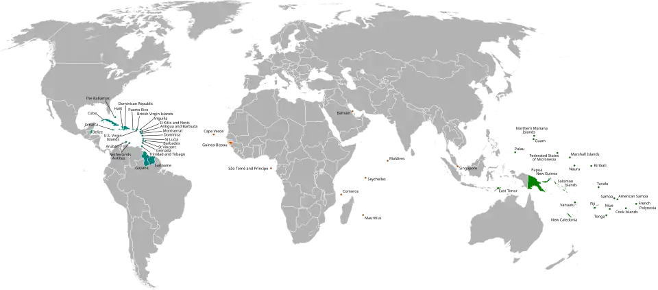 1. a b Departamento de Assuntos Econômicos e Sociais das Nações Unidas (ed.). «Small Island Developing States». Consultado em 6 de outubro de 2018
