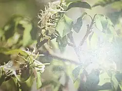 - Flores aglomeradas em pequenas cimeiras terminais, alvas, pequenas, de perfume muito agradável, que se espalha pela caatinga