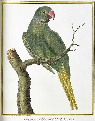 Psittacula eques é uma espécie extinta de ave da família Psittacidae. Endêmica da ilha Reunião, parte das ilhas Mascarenhas, no oeste do oceano Índico. Alguns autores consideram a população da ilha de Reunião coespecífica com a da Maurício, enquanto outros pesquisadores tratam-nas como duas espécies distintas.[1]