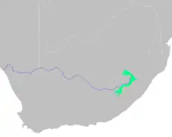 Pode ser encontrada nos seguintes países: Lesoto, África do Sul, possivelmente Botswana, possivelmente República Democrática do Congo, possivelmente Namíbia e possivelmente em Zâmbia.