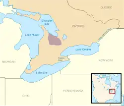 ![]() Mapa da Região dos Petun sobreposto às atuais divisões administrativas | |