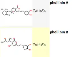 - ↑ Lee, In-Kyoung; Jin-Young; Young-Ho; Bong-Sik (maio de 2010). «Phellinins B and C, new styrylpyrones from the culture broth of Phellinus sp». The Journal of Antibiotics. 63 (5): 263–266. ISSN 1881-1469. PMID 20339398. doi:10.1038/ja.2010.25