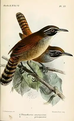 Subespécie P. c. amazonicus (na frente) e P. c. griseipectus (atrás); ilustração de Keulemans, 1881