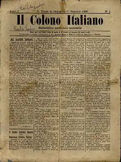 O jornal fundado pelo padre, Il Colono Italiano, Bollettino Cattolico Mensile,Ver nota [23] tem sido lembrado por vários historiadores pelo papel que desempenhou na história política e religiosa da cidade. Lançado em 1° de janeiro de 1898 e impresso em Porto Alegre, em sua primeira edição apresentava seu programa: