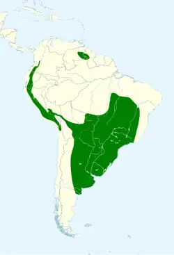 Distribui-se por quase toda a América do Sul. Está presente em 12 países, não se encontrando apenas na Guiana Francesa e no Surinam.[4]
