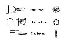 Devido a uma ampla variedade de formas e tamanhos de bicos, a consistência da tinta pode ser variada. A forma da peça de trabalho e da consistência desejada e tinta padrão são fatores importantes na escolha de um bocal. Os três bicos mais comuns são o cone completo, cone oco, e fluxo plano. Existem dois tipos de processos de pulverização. Em um método de operação manual, o equipamento é operado por um operador qualificado, e aplicado a uma distancia de cerca de 6 a 10 polegadas (15-25 cm) do objeto. Em um processo automático, a cabeça da pistola está ligada a um robô automatizado através do bloco de montagem e proporciona o fluxo de tinta a partir das operações pré-programada. O objeto a ser pintado é geralmente colocado sobre rolos ou uma plataforma giratória para assegurar uma cobertura igual de todos os lados.