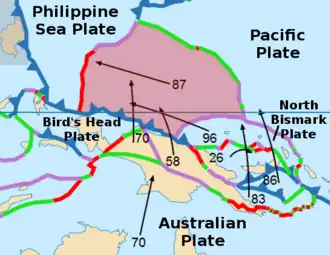 - Hall, R. (2002). «Cenozoic geological and plate tectonic evolution of SE Asia and the SW Pacific: computer-based reconstructions, model and animations» (PDF). Journal of Asian Earth Sciences. 20 (4): 353–431. Bibcode:2002JAESc..20..353H. doi:10.1016/S1367-9120(01)00069-4. Consultado em 18 dezembro 2016