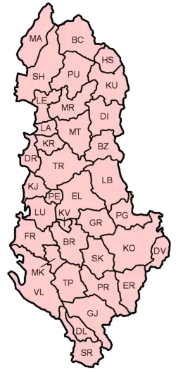 As placas de identificação de veículos da Albânia são emitidas pelos diretórios regionais de transportes.