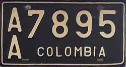 Particular | Particular | 1972-1990 | preto sobre branco | AB 1234 | COLOMBIA é gravado na parte inferior da placa