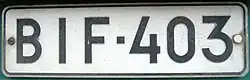 - ↑ «Vehicle registration plate Arquivado em 1 de junho de 2016, no Wayback Machine.».
