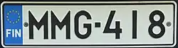 As Placas de identificação de veículos na Finlândia seguem um sistema alfanumérico introduzido em 1972, formado por três letras e três dígitos separados por um travessão (por exemplo, ABC-123) e não indicam o lugar de procedência do veículo. Os caracteres são pretos sobre fundo branco, com as medidas da placa de 442 mm de largura por 118 mm de altura.[1] O formato desde 2001 é comum ao das Placas de identificação de veículos na União Europeia, possuindo também a banda azul à esquerda com as estrelas em círculo da UE e o código do país, FIN.[2]