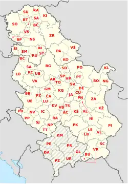 - ↑ Pravilnik o utvrđivanju registarskih područja za motorna i priključna vozila, „Službeni glasnik RS”, no. 34, 30. September 1998.
