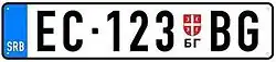 As placas de identificação de veículos da Sérvia são emitidas usando um código regional de duas letras, seguido por um código de licença alfanumérico de três ou quatro dígitos e duas letras, separados por um hífen, nos formatos BG 123-AA ou BG 1233-AA). O modelo atual foi instituído em 2011.[1]