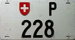 A empresa de correios, telégrafos e telefones (PTT) e as ferrovias federais suíças (SBB) faziam parte do governo federal até 1997/98. Seus veículos possuíam placas de matrícula compostas pelo escudo suíço, seguidas pela letra "P" (abreviação de "Post") e um número com até cinco dígitos. Quando se tornaram empresas independentes, as placas P foram substituídas por placas cantonais em 2004.