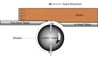 Em operação, a prancha a ser aplainada é mantida com a face contra a barreira lateral e a borda a ser articulada apoiada na mesa de alimentação. A prancha é atravessada através da cabeça do cortador e da mesa de saída. As facas na cabeça de corte rotativa removem uma quantidade de material e a relação das duas mesas e da barreira lateral mantém a placa orientada de tal maneira que o resultado é uma aresta que é plana ao longo de seu comprimento e perpendicular à face da placa.