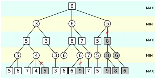 Pode acontecer que, ao selecionar um ramo de um certo nó, a pontuação mínima que é garantida ao jogador minimizador se torne menor do que a pontuação máxima que é garantida ao jogador maximizador (beta <= alpha). Se isso ocorrer, o "nó pai" não deve selecionar esse nó, pois isso fará com que a pontuação para o node pai seja pior. Por fim, os outros ramos do nó não precisarão ser explorados.