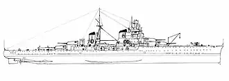 | Armamento | 8 canhões de 203 mm 16 canhões de 100 mm 4 canhões de 40 mm 8 metralhadoras de 13,2 mm |