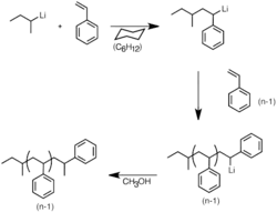 - ↑ a b c d e Quirk, R. Anionic Polymerization. In Encyclopedia of Polymer Science and Technology; John Wiley and Sons: New York, 2003.