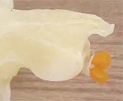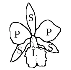 - ↑ a b Phillip Cribb (2001) Morphology of Orchidaceae. Em A. M. Pridgeon, P. J. Cribb, M. W. Chase, and F. N. Rasmussen eds., Gera Orchidacearum, vol. 1. Oxford University Press, Oxford, UK ISBN 0-19-850513-2.
