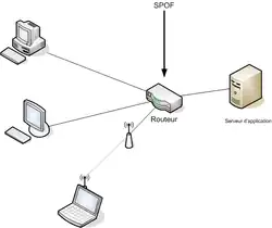 Tome-se como exemplo um servidor web da Internet: se este for servido por um único acesso à Internet aos seus clientes, ou seja, se for servido por um único ISP, esse será um ponto único de falha.
