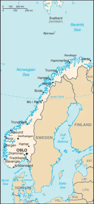 - Ponto mais setentrional: Knivskjellodden, cabo Norte, Finnmark (🌍)