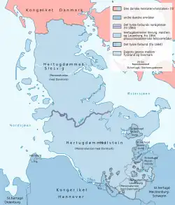- ↑ a b c «Schleswig-Holstein question». Britannica (em inglês). Consultado em 16 de janeiro de 2025