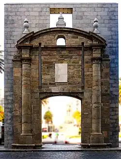 Em 1877, devido ao crescimento demográfico de Montevidéu, as muralhas que cercavam a cidade foram demolidas, incluindo a Cidadela. A Porta foi movida para o edifício da Escola de Artes e Oficios em 1879.[1] Em 1959 foi reconstruída em seu lugar original.[1] Foi restaurada em 2009.[1]