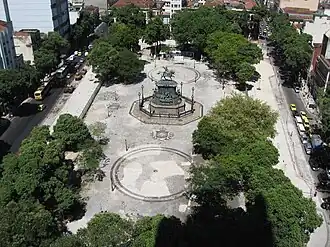 No século XIX, esta praça era o centro da vida mundana e de lazer da cidade. Aqui se situavam o Teatro São Pedro de Alcântara (atualmente Teatro João Caetano), o Teatro Variedades (demolido em 1940), a sala de café-concerto Maison Moderne (demolido em 1940) e o famoso restaurante Stadt Munchen, que funcionava pela madrugada dentro, servindo clientes que chegavam dos teatros.[3]