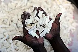 - ↑ «Uptake of wetting method in Africa to reduce cyanide poisoning and konzo from cassava». Food and Chemical Toxicology. 49: 539–542. doi:10.1016/j.fct.2010.04.049