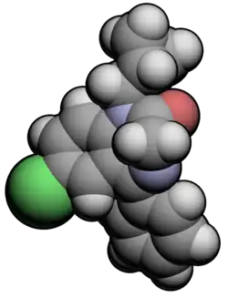 | Nome IUPAC | 7-chloro-1-(cyclopropylmethyl)-5-phenyl-1,3-dihydro- 2H-1,4-benzodiazepin-2-one | ||||||||||||||||