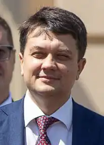 Dmytro Razumkov é o atual presidente desde que foi confirmado em 29 de agosto de 2019.