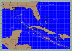 Os métodos de previsão de ciclones tropicais mudaram com o passar do tempo. As primeiras previsões conhecidas no Hemisfério Ocidental foram feitas pelo Tenente-Coronel William Reed, do Corps of Royal Engineers, em Barbados, em 1847. Reed baseava suas previsões principalmente em medições da pressão barométrica. Benito Viñes, S.J., introduziu um sistema de previsão e alerta baseado em mudanças na cobertura de nuvens em Havana durante a década de 1870. A previsão do movimento de furacões era feita com base nos movimentos das marés, bem como nas alterações das nuvens e do barômetro ao longo do tempo. Em 1895, observou-se que condições frias com pressão unusually alta precediam ciclones tropicais nas Índias Ocidentais por vários dias. Antes do início do século XX, a maioria das previsões era feita por observações diretas em estações meteorológicas, que eram então transmitidas aos centros de previsão por telégrafo. Foi somente com o advento do rádio no início do século XX que observações de navios no mar começaram a estar disponíveis para os meteorologistas. Apesar da emissão de alertas e avisos de furacão para sistemas que ameaçavam a costa, a previsão do trajeto de ciclones tropicais só começou em 1920.[1] Em 1922, sabia-se que os ventos entre 3 e 4 quilômetros de altura acima da superfície do mar, no quadrante frontal direito das tempestades, representavam a direção do movimento da tempestade, e que os furacões tendiam a seguir a isóbara fechada mais externa da crista subtropical.[2]