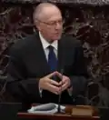 - ↑ Gregorian, Dareh (29 de janeiro de 2020). «Trump's Senate trial: Key moments from Day One of the question-and-answer phase» [Julgamento de Trump no Senado: Momentos-chave do primeiro dia da fase de perguntas e respostas]. NBC News. Consultado em 30 de setembro de 2025. Arquivado do original em 30 de janeiro de 2020