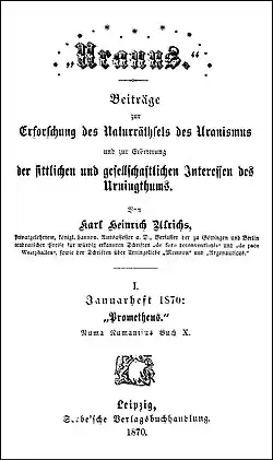 - ↑ «Karl Heinrich Ulrichs: o primeiro jurista a defender leis a favor de homossexuais». Revista Lado A. 23 de janeiro de 2019. Consultado em 9 de outubro de 2022