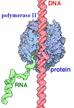 Transcrição de ADN em RNA utilizando a proteína enzimática RNA polimerase II.