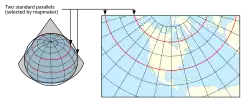 - ↑ (em inglês) PDFlink sem parâmetros PDF Institute for Environment and Sustainability, European Communities,Map Projections for Europe, 2001, page 43.