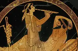 Tondo em um kílix de figuras vermelhas, conservado no Museu Metropolitano de Arte de Nova York.