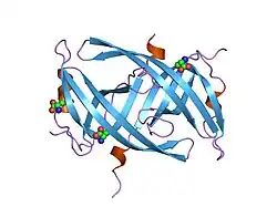 - ↑ Oakley, A.J. (2014). «Intramolecular binding mode of the C-terminus of Escherichia coli single-stranded DNA binding protein determined by nuclear magnetic resonance spectroscopy.». Nucleic Acids Research. 42 (4): 2750–7. PMC 3936761