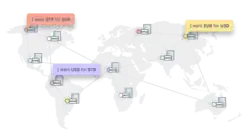 Por exemplo, um usuário quer enviar euros a outro usando seu saldo de USD. Stellar envia automaticamente uma oferta para o câmbio distribuído vendendo USD para EUR. A rede encontra o melhor taxa de câmbio para a transação.