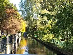 - Canal Raduni — canal com dique, edifícios de acompanhamento e vegetação ao longo de toda a extensão da instalação — da eclusa a oeste de Pruszcz Gdański até a foz do canal no rio Stare Motława em Gdansk