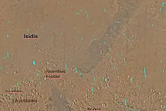 - ↑ Davies, M.E.; Batson, R.M.; Wu, S.S.C. “Geodesy and Cartography” in Kieffer, H.H.; Jakosky, B.M.; Snyder, C.W.; Matthews, M.S., Eds. Mars. University of Arizona Press: Tucson, 1992.